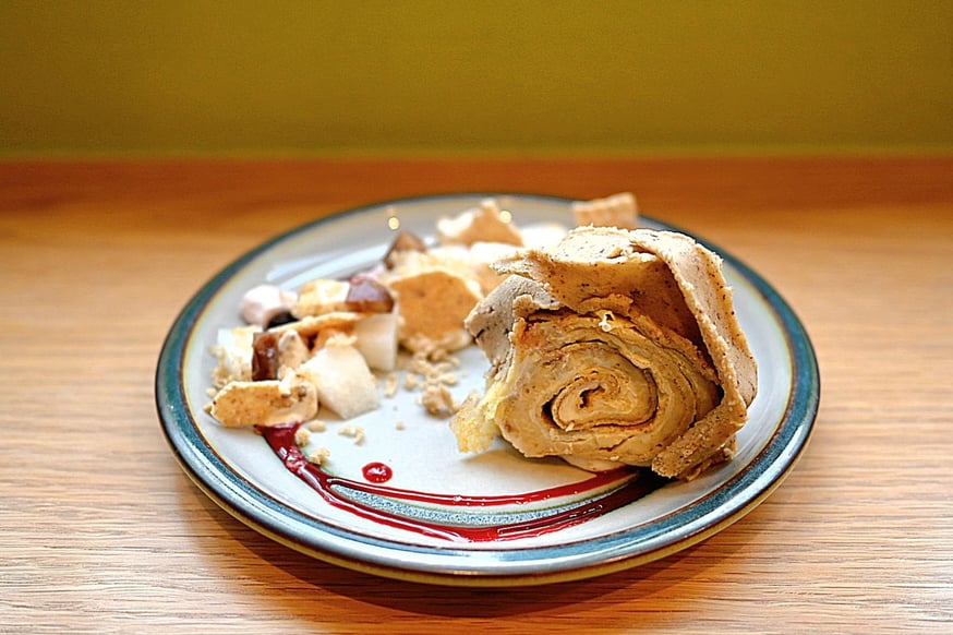 いちじくのはちみつチーズクリームとジャスミンプリンのプレート